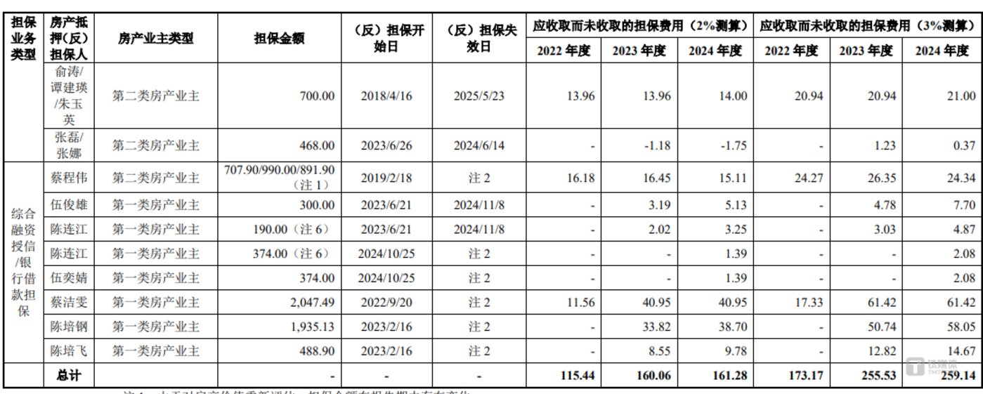 上述担保主要分为三个情形,如情形一为现实约束东说念主过火至支属(不包含蔡程伟)以自有房产为刊行东说念主无偿提供担保(以下简称“第一类房产业主”);情形二为职工过火至支属(包含蔡程伟,蔡程伟是现实约束东说念主至支属,同期亦然公司职工,两边在2023年执意的《条约书》中对担保用度和担保用度计较开动日进行了商定,因此将其归于此类)基于刊行东说念主的稳步打算、将来的发展信心及个东说念主的职业发展以自有房产为刊行东说念主有偿或无偿提供担保(以下简称“第二类房产业主”);情形三为职工禁受了现实约束东说念主提供的无息借债并以自有房产无偿为刊行东说念主提供担保(以下简称“第三类房产业主”)。具体情况如下: